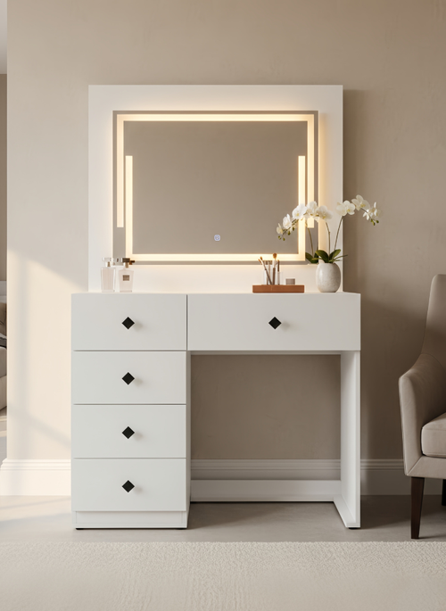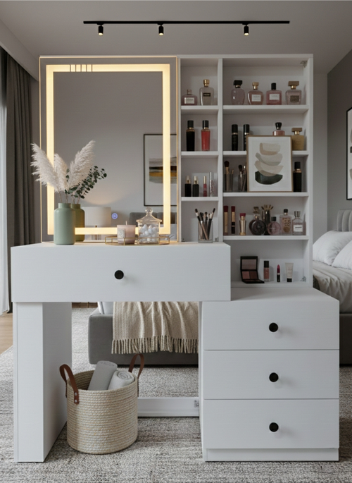 Explore our sophisticated dressing tables featuring mirrors and ample storage for a seamless organization experience.